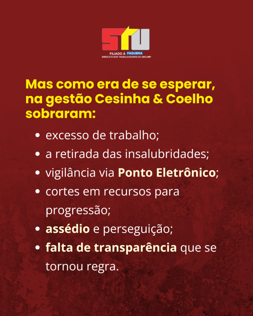Entramos mais um ano sufocados por uma política de descaso da gestão Cesinha & Coelho que empilhou uma sequência de negativas que afetam diretamente a nossa dignidade, saúde e condições de trabalho.