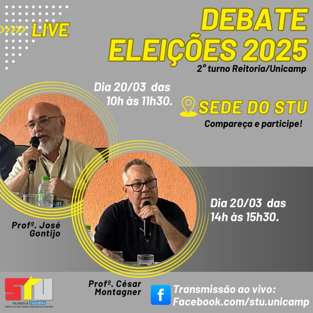 Os dois debates serão transmitidos ao vivo pelo Facebook do STU: facebook.com/stu.unicamp